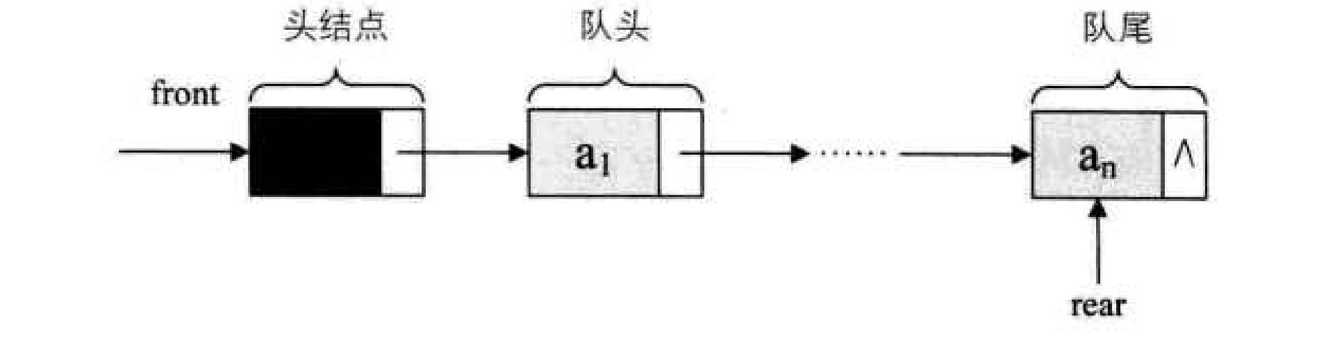 • 空队列判断条件 front和rear同时指向头节点