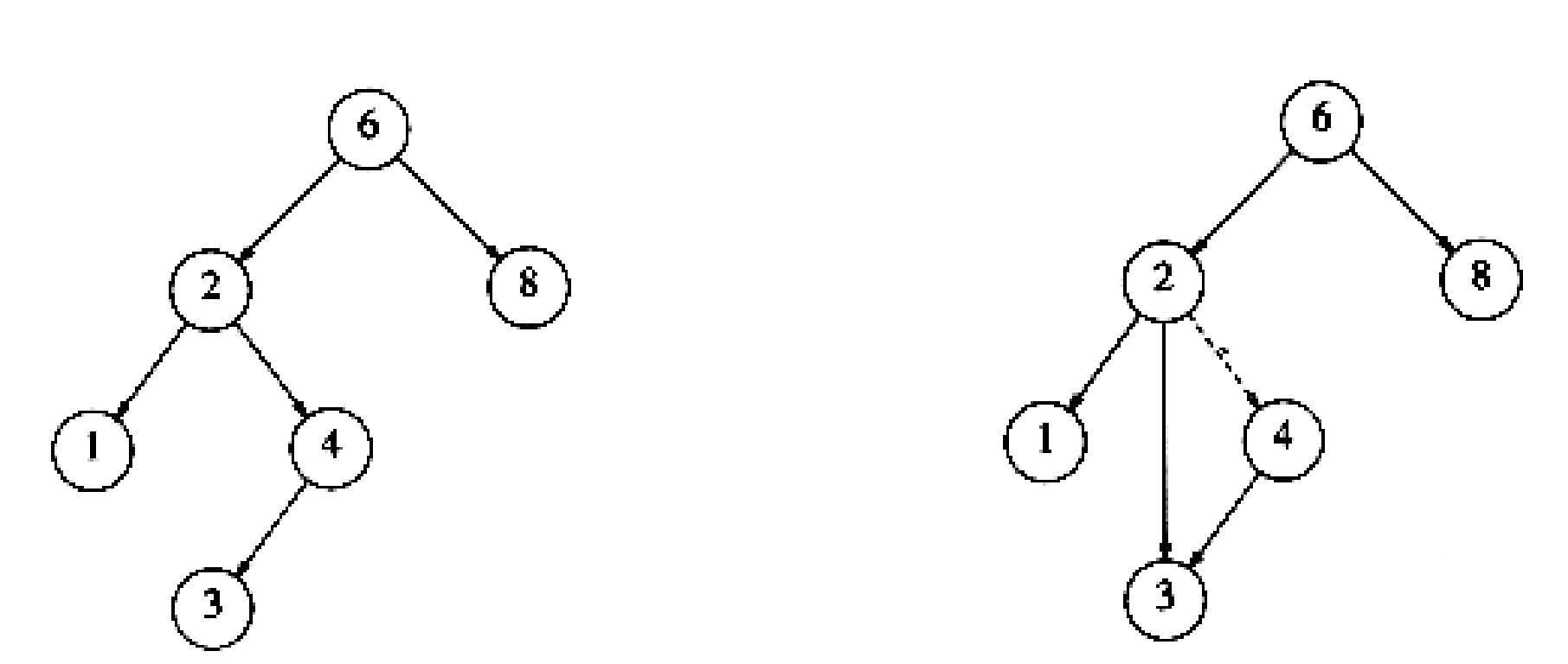 | SearchTree Delete(ElementType X, SearchTree T)。 { Position TmpCell; if(T == NULL) Error("Element not found"); else if(X < T->e) T->Left = Delete(X, T->Left); else if(X > T->e) T->Right = Delete(X, T->Right); else if(T->Left && T->Right) { TmpCell = FindMin(T->Right); T->e = TmpCell->e; T->Right = Delete(T->e, T->Right); } else { TmpCell = T; if(T->Left == NULL) T = T->Right; else if(T->Right == NULL) T = T->Left; free(TmpCell); } return T; }